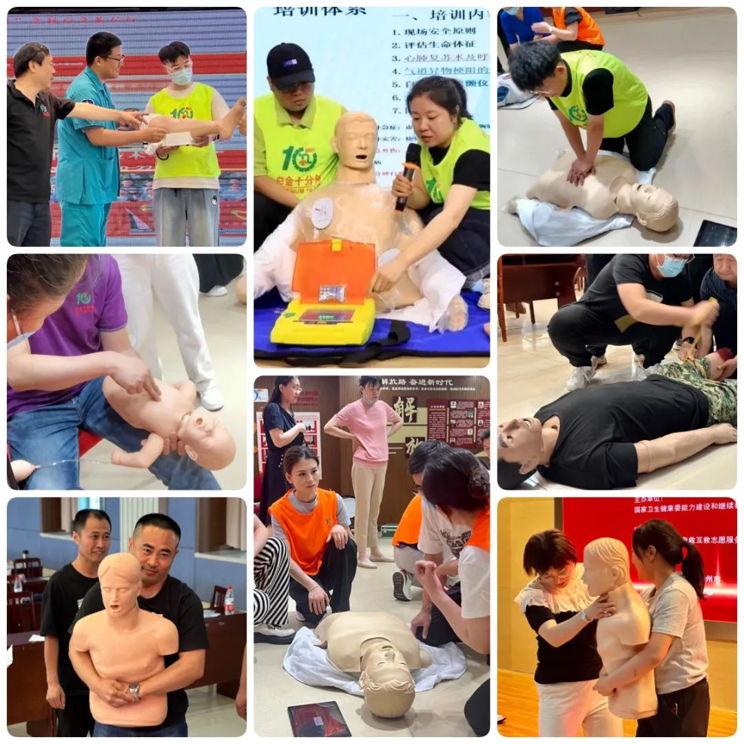 天津天堰科技股份有限公司作為本次活動(dòng)的公益支持單位,全程參與并提供培訓(xùn)產(chǎn)品支持。在現(xiàn)場(chǎng)實(shí)操環(huán)節(jié),“白金十分鐘 黃金一小時(shí)”專家團(tuán)隊(duì)及各院專家團(tuán)隊(duì)共同為參會(huì)人員科普宣講急救知識(shí),培訓(xùn)急救技能。針對(duì)心肺復(fù)蘇操作、解除氣道異物操作、AED操作等實(shí)用技術(shù)進(jìn)行分組輪訓(xùn),為大家演示和講解急救操作技能,詳細(xì)分解示范演練規(guī)范動(dòng)作,手把手教授動(dòng)作要領(lǐng),帶領(lǐng)大家積極參與,動(dòng)手練習(xí)。