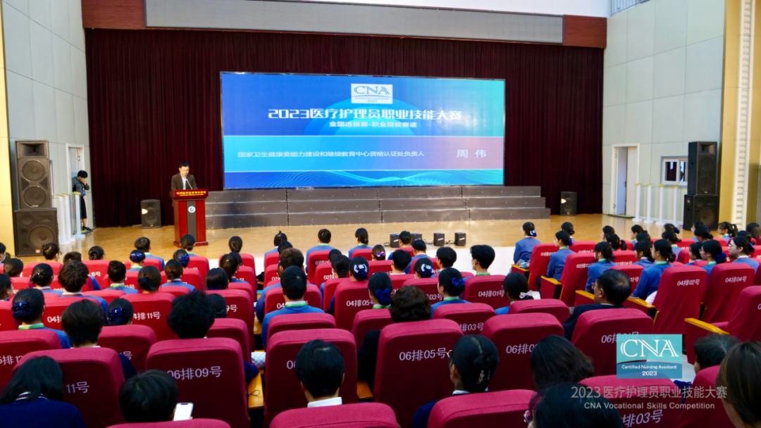 國(guó)家衛(wèi)生健康委能力建設(shè)和繼續(xù)教育中心資格認(rèn)證處負(fù)責(zé)人周偉代表大賽主辦方對(duì)此次大賽各支持單位、專家學(xué)者及領(lǐng)導(dǎo)們表示感謝,對(duì)參賽院校、選手和執(zhí)裁團(tuán)隊(duì)表達(dá)敬意。他表示,近年來(lái)國(guó)家一系列政策文件的出臺(tái),對(duì)加快發(fā)展護(hù)理服務(wù)業(yè),增加護(hù)理服務(wù)供給,精準(zhǔn)對(duì)接人民群眾多樣化、多層次的健康需求具有重要意義。他希望通過舉辦本次賽事,集中展現(xiàn)一線醫(yī)療護(hù)理員的良好職業(yè)風(fēng)采,助力形成醫(yī)教協(xié)同,改革創(chuàng)新的向好勢(shì)態(tài),不斷助力健康中國(guó)建設(shè)。