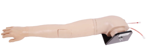 該靜脈輸液手臂模型是第五代產品,可實現手背靜脈網以及肘部靜脈網的輸液、穿刺及注射訓練。該產品由硅膠材料制成,觸感和外觀都極度仿真,代表了天堰科技人體模型的較高水準。