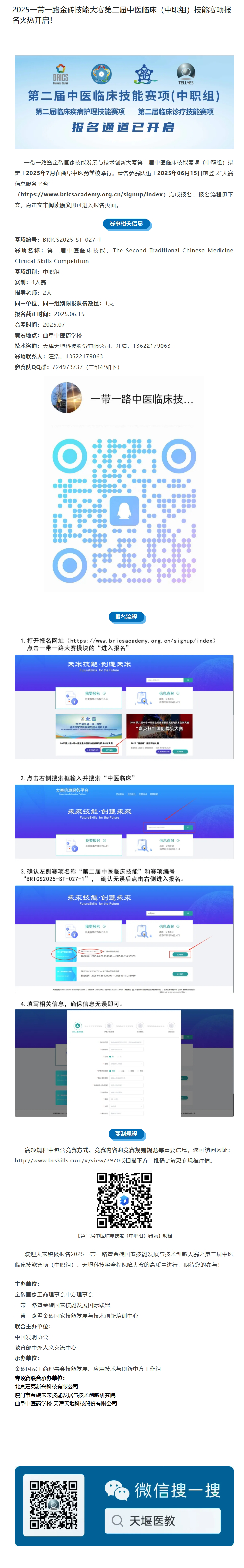 2025一帶一路金磚技能大賽第二屆中醫(yī)臨床(中職組)技能賽項報名火熱開啟!